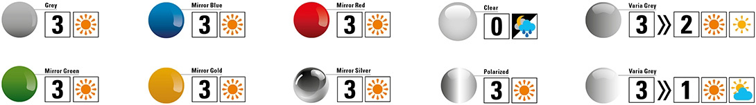 針對不同的運動習慣選擇偏光、全天候變色、高對比色彩與各色水銀鍍膜等功能,